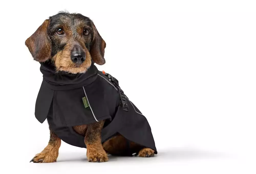 Hunter Nordby Dachshund Dekken (36 cm) i tidløs svart er designet for å løse utfordringen med å finne et velsittende dekken til raser med lang kropp og korte ben, som Dachshund (gravhund), Corgi og Basset Hound. Dette dekkenet er spesialdesignet med ekstra lengde for å sikre at hele ryggen holdes tørr og varm – et kritisk punkt for disse rasene.