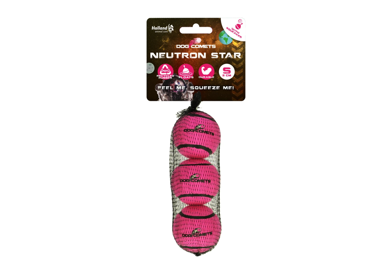 Dog Comets Neutron Star Tennis Ball With Squeaker S Pink (3-pack)