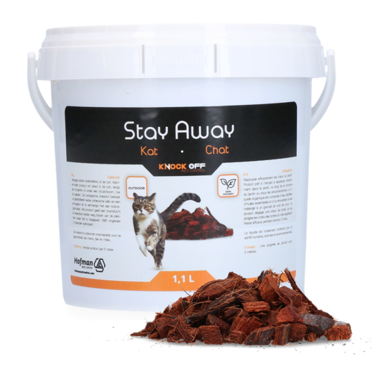 Å frastøte dyr på en naturlig måte blir stadig mer populært! Med Stay Away-linjen fra Knock Off er det definitivt et gjennombrudd på dette området. Knock Off Stay Away Cat Garden jager effektivt katter ut av hagen. Bruksklart produkt for påføring direkte i hagen, langs hagekanten eller under busk/tre.